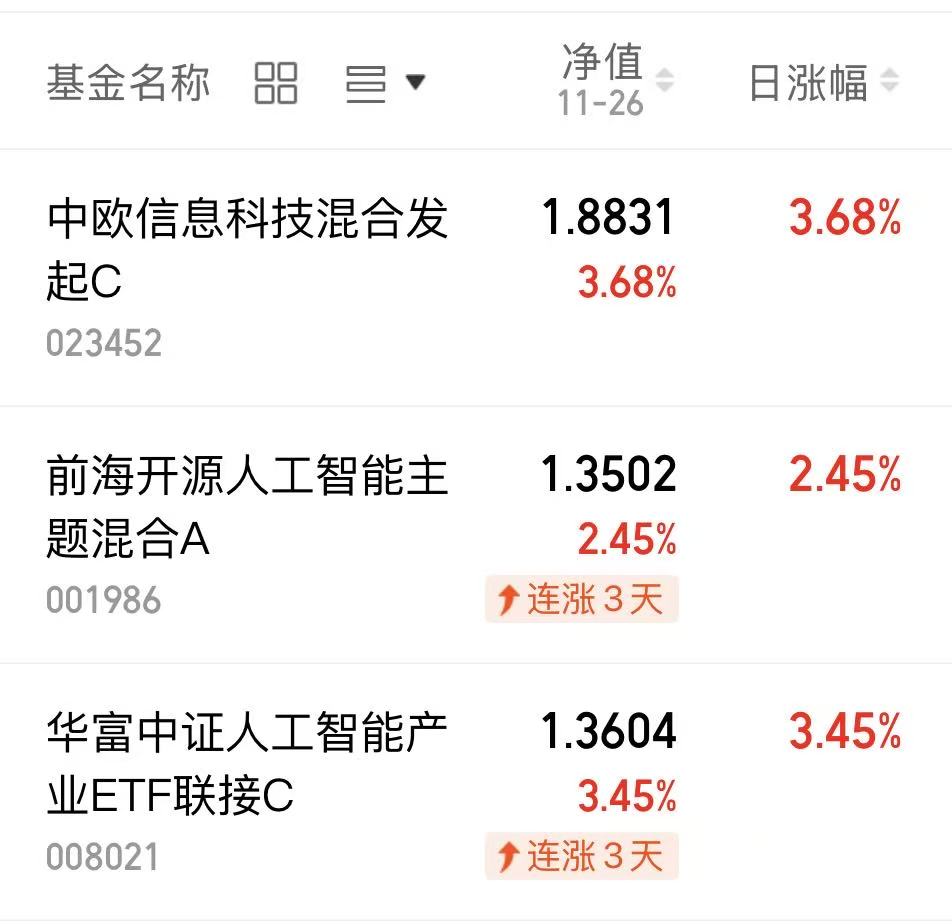 $华富中证人工智能产业ETF联接C(OTCFUND|008021)$今天上涨3.45%