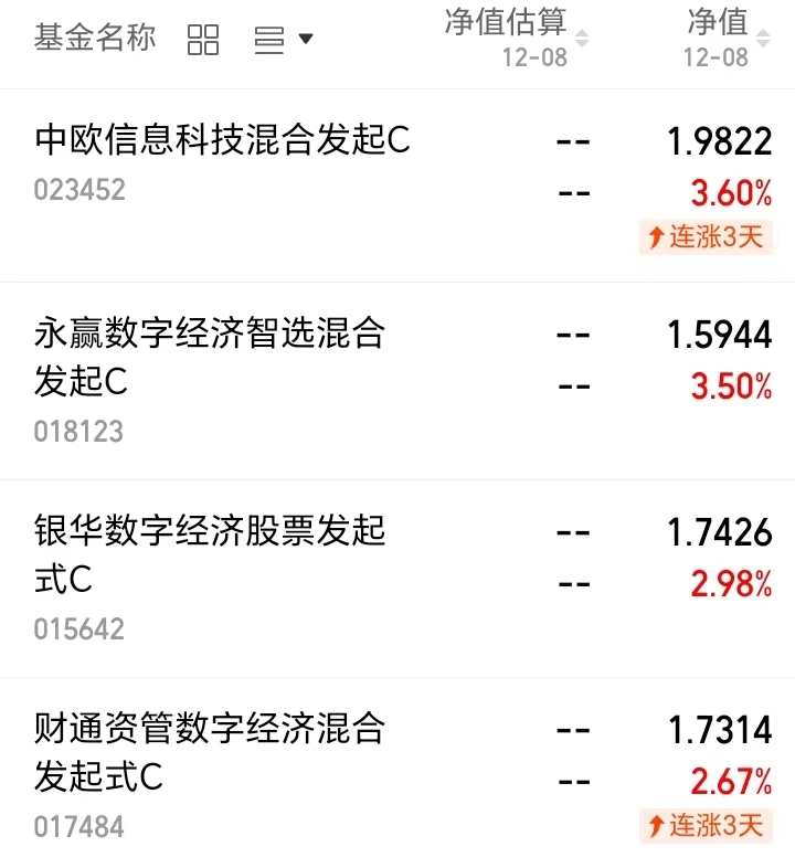 $永赢数字经济智选混合发起C(OTCFUND|018123)$今天上涨3.5%;