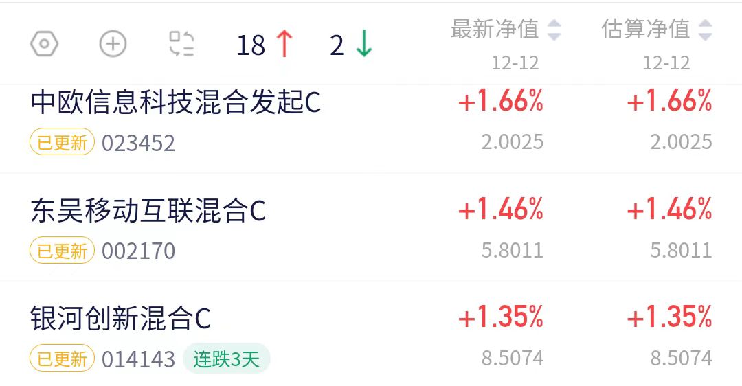 $东吴移动互联混合C(OTCFUND|002170)$今天上涨1.46%$银河创新成长混合C(OTCFUND|014143)$今天上涨1.35%