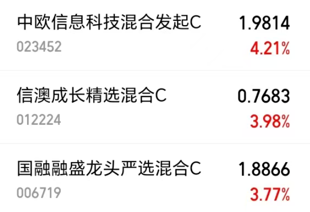 $中欧信息科技混合发起C(OTCFUND|023452)$今天上涨4.21%;