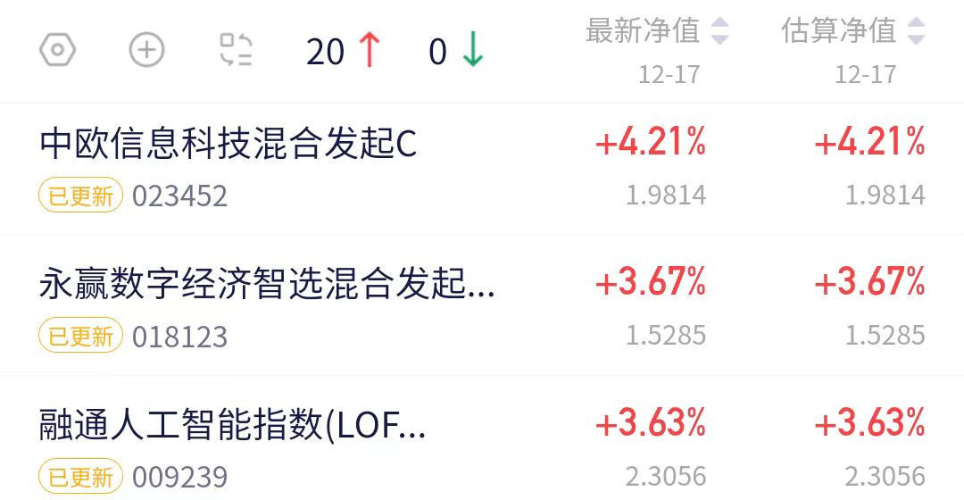 $中欧信息科技混合发起C(OTCFUND|023452)$上涨4.21%$永赢数字经济智选混合发起C(OTCFUND|018123)$上涨3.67%