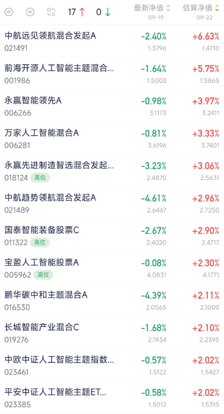 人工智能基金估值盘后播报,好心情源于周一开门红