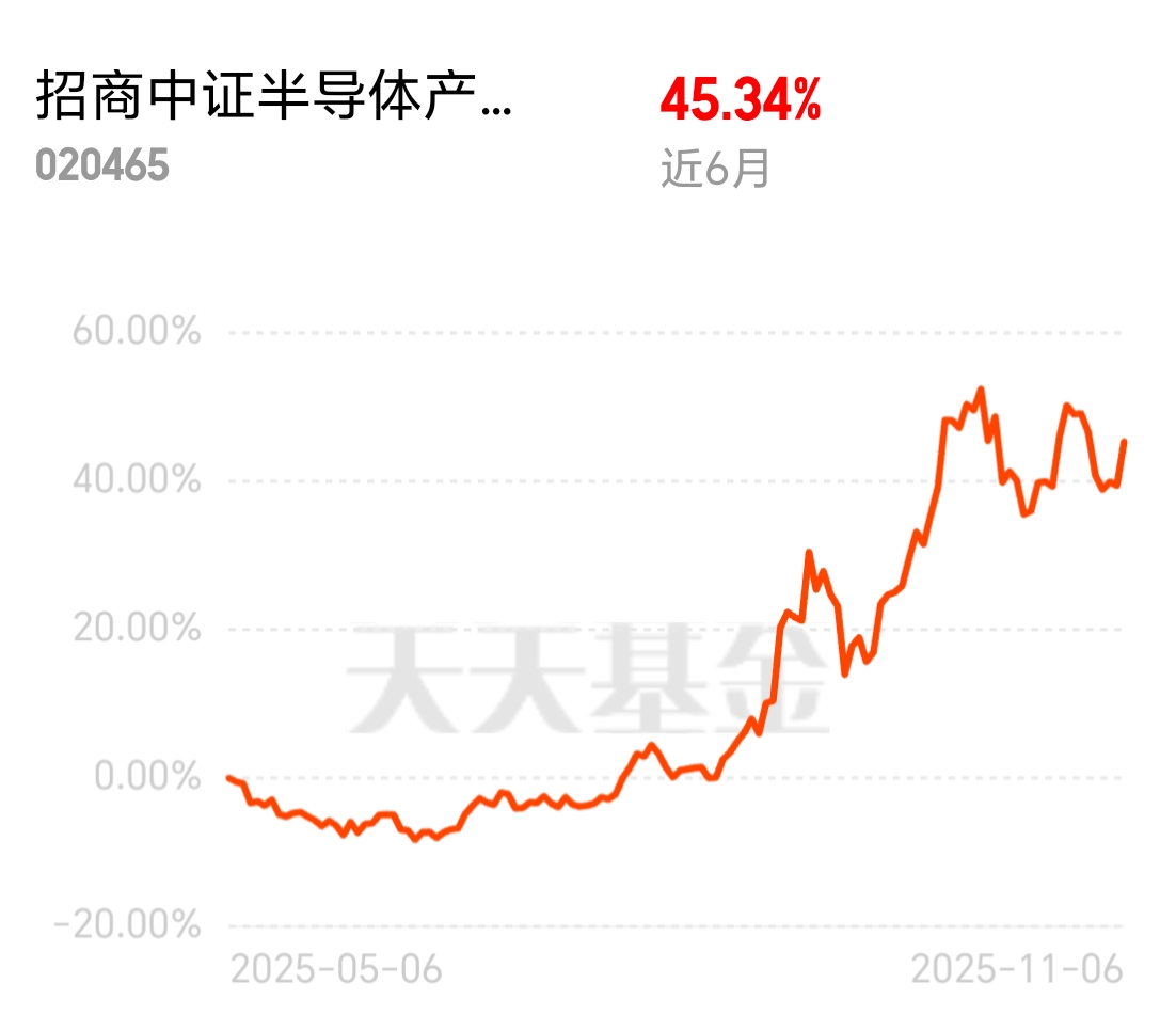 全球存储芯片供不应求,AI驱动下数据中心需求激增,各大厂商都在提价。招商中证半导体产业ETF联接C近6个月业绩亮眼,有45.34%的涨幅,昨天一天就涨了4%多,资金扎堆涌入存储赛道,接下来大概率接着涨。