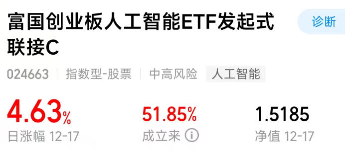 科技操作贴:昨天大涨的科技板块今天开始回调,不过从昨天的行情来看,现在科技主线依然清晰,而且反弹力度都不小,调整就是机会,加了1000$富国创业板人工智能ETF发起式联接C(OTCFUND|024663)$ ,昨天大涨4.63%,涨幅居前,这只基金聚焦创业板人工智能,持仓集中度更高爆发力更强,近一个月+14.16%,成立以来+51.85%,业绩优秀赚钱能力强