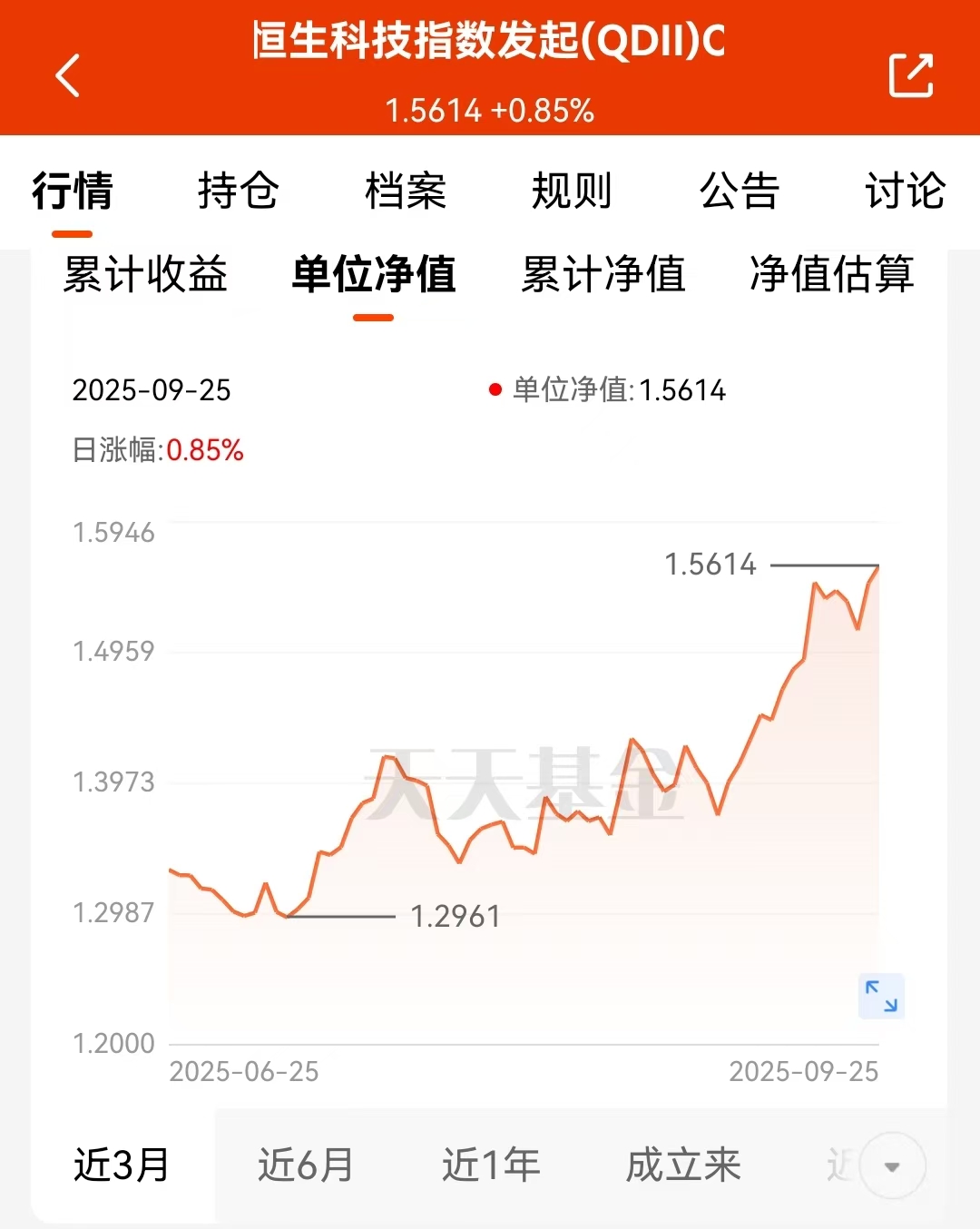 这基$南方恒生科技指数发起(QDII)C$(020989)最近是真能打,近一年直接干上去55%的收益,看着都眼热。现在市场风向明显在变,之前炒得火热的硬件端感觉差不多了,该轮到应用端表现了。你看看那些互联网巨头,都在AI应用上憋大招呢,这才是真正能产生现金流的地方。恒生科技指数正好重仓这些公司,等它们的AI业务开始贡献利润,估值还得往上走。现在这位置我觉得还是低位,加上全球流动性环境改善,机会大于风险。这基金跟踪指数很紧,不用担心跑偏,适合拿住了等风来。#“924行情”一周年 你赚了多少?#