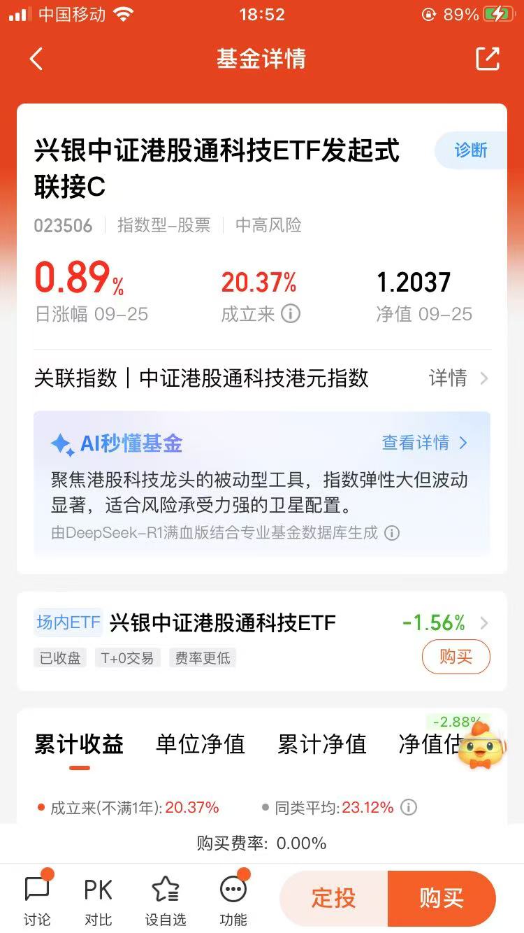 以兴银这只基金为例,作为ETF联接基金,它通过投资场内的港股通科技ETF间接跟踪指数,优势是门槛低(无需港股账户)、费率透明(管理费0.5%),但需注意短期赎回费(持有<7天费率1.5%)。对于普通投资者,定投可能是平滑波动的好方式。
