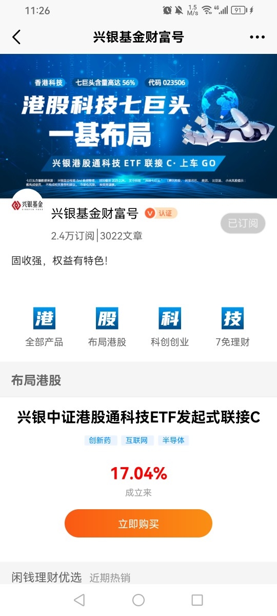 $兴银港股通科技ETF联接指数基金C(代码:023506)$