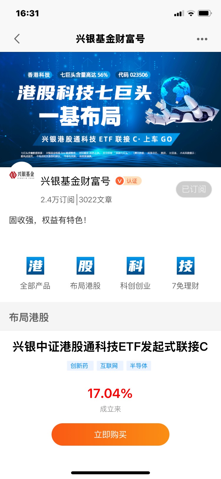 总的来说,港股通科技板块当前兼具估值优势和成长潜力,是值得关注的投资方向。而兴$兴银中证港股通科技ETF发起式联接C(OTCFUND|023506)$作为布局该领域的工具,具有定位精准、团队专业、费率低廉等优势。当然,投资要有耐心,不要期待一夜暴富。我会定投这只基金,陪伴中国科技企业成长,分享发展红利。