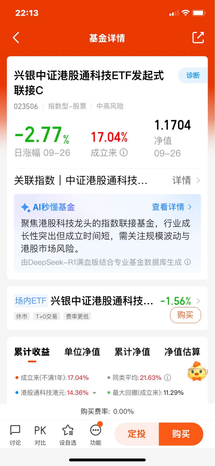 说到具体的投资工具,我最近比较$兴银中证港股通科技ETF发起式联接C(OTCFUND|023506)$。这支基金有几个亮点值得关注: