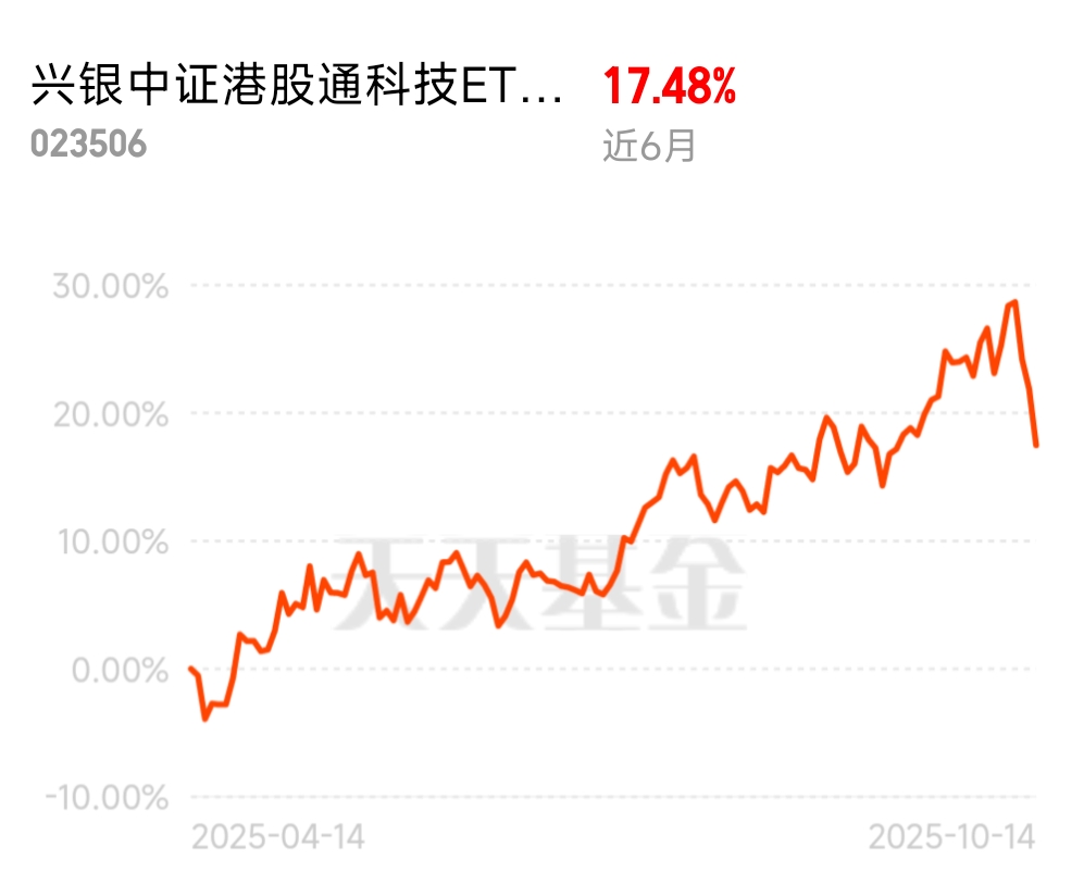 从市场近期表现看,尽管港股通科技指数在2025年10月14日出现3.6466%的单日回调,但盘面留下的长长下影线显示多方力量强劲,调整更属于前期上涨后的正常休整。结合估值底部、政策红利、技术突破与资金回流四大逻辑,港股通科技板块已进入“戴维斯双击”的窗口期。兴银中证港股通科技ETF发起式联接C 作为精准跟踪板块核心资产的工具,有望在AI产业化、半导体国产替代、智能汽车出海等浪潮中,为投资者带来长期稳健的回报。对于布局科技赛道的投资者而言,当前正是把握估值洼地机遇、分享产业成长红利的关键时期。@兴银基金