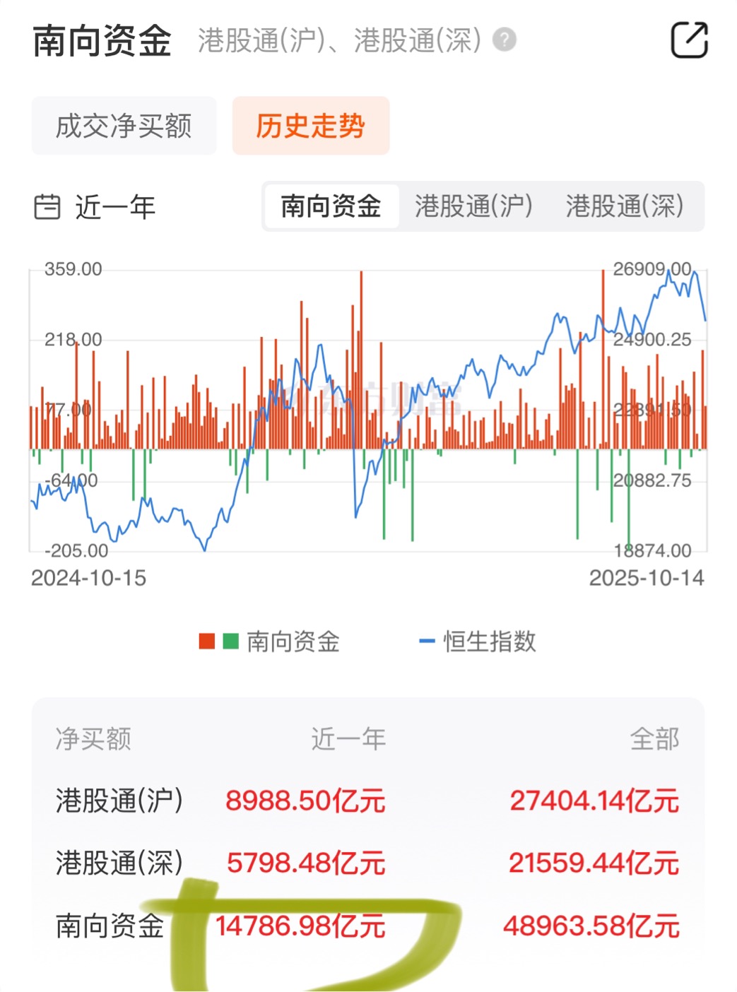 资金面同样给出明确指引。截止2025年10月14号,南向资金近一年净流入港股14786.98亿元,创历史新高,其中科技、互联网、消费电子成主要扫货阵地。这说明内资机构用真金白银表达了对港股科技资产的认可。更值得玩味的是外资的态度转变:瑞银公开上调中国科技股评级,高盛、德银等国际大行重新审视中国资产。背后逻辑很清晰——当中证港股通科技指数估值仍处于近五年20%以下低位(比90%时间都便宜),而中国AI技术突破又带来盈利上修预期,全球资本自然要回流估值洼地。