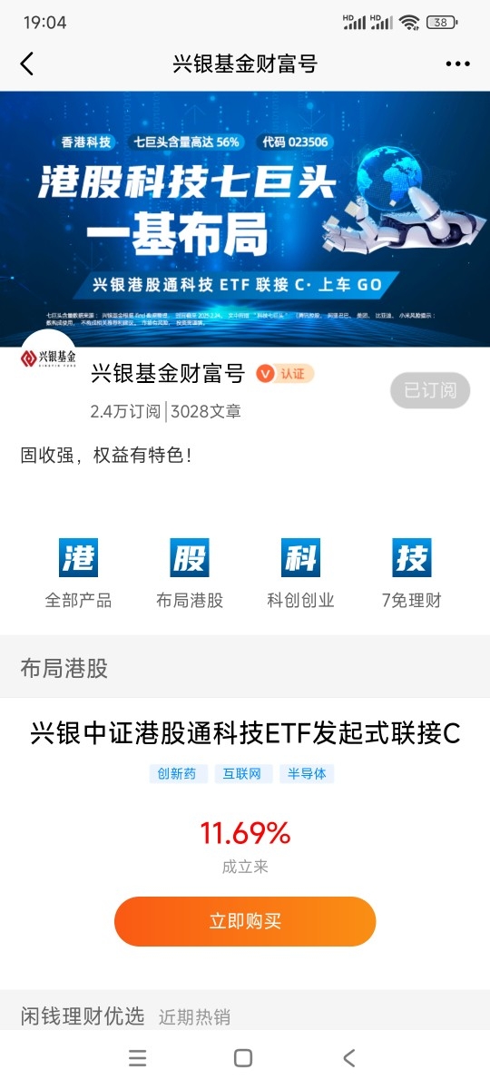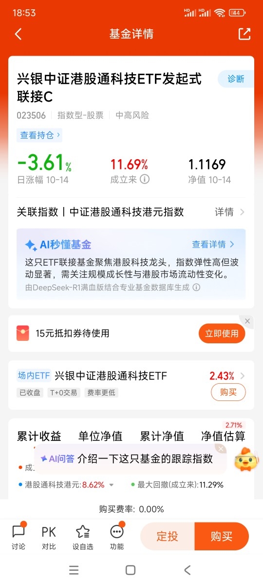 #我看好港股通科技未来表现#$兴银中证港股通科技ETF发起式联接C$ (代码:023506)