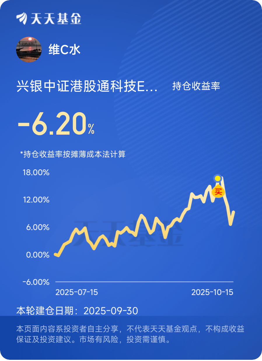 #我看好港股通科技未来表现#$兴银中证港股通科技ETF发起式联接C$ (代码:023506)。