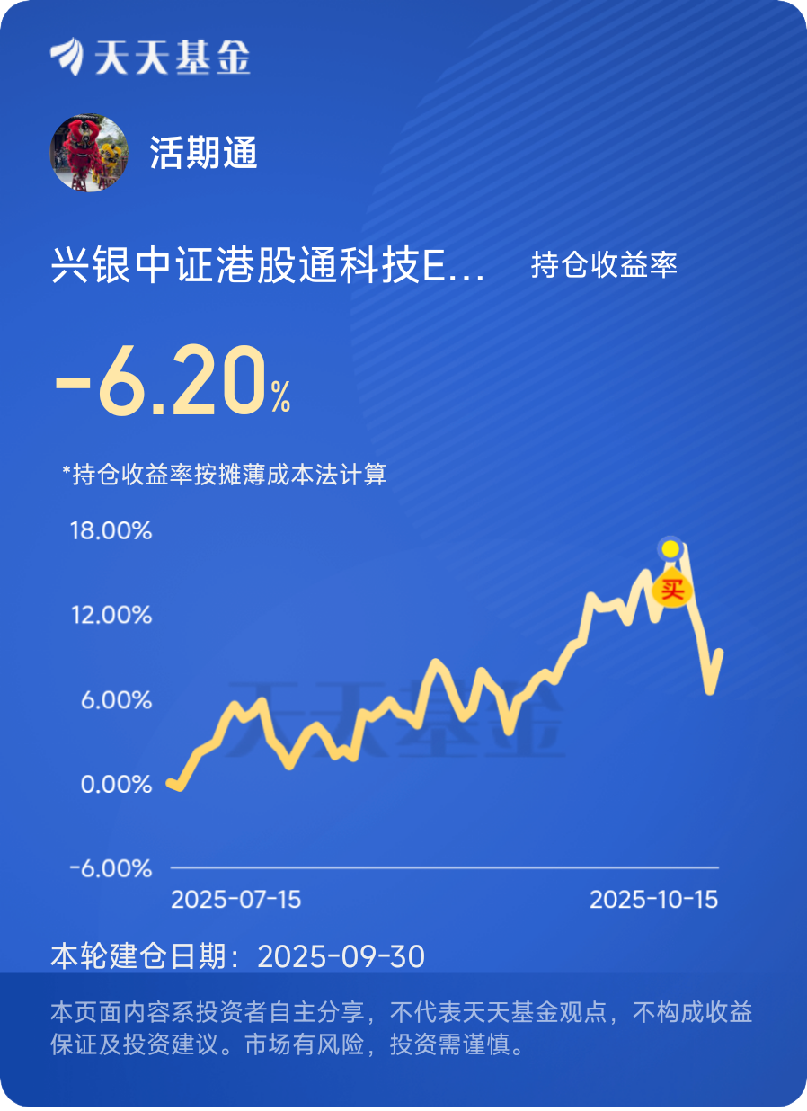 最后,投资起来还特别方便。内地投资者通过港股通就能参与,不用换外汇、开港股账户,$兴银中证港股通科技ETF发起式联接C$ 不用申购费,持有满7天连赎回费都免了,管理费率也低,几千块就能一键布局整个板块的龙头,特别适合不想费脑子研究个股的普通人 。@兴银基金