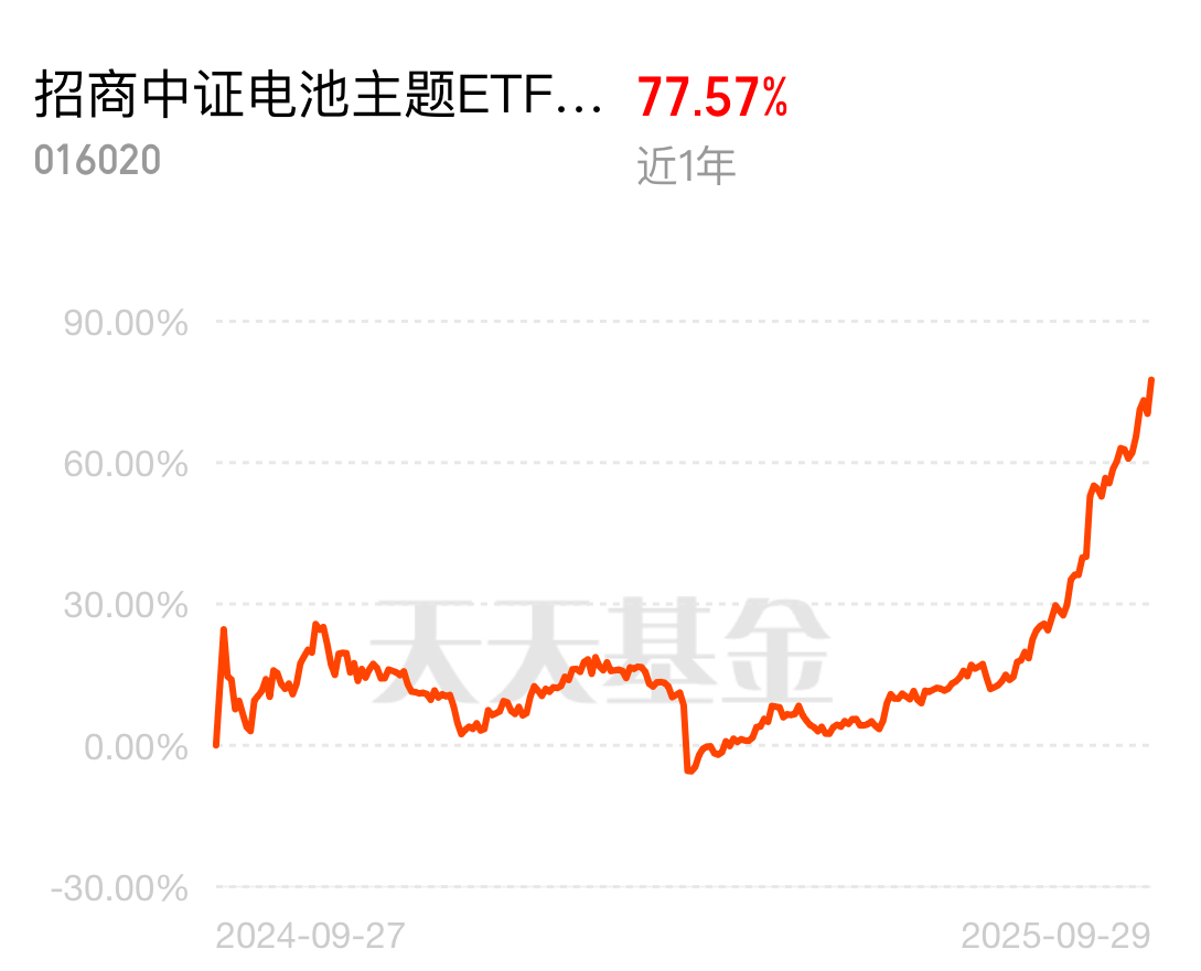 电池板块昨天行情火热,今天指数往上走。指数覆盖动力、消费电池领域,还有固态电池股,招商中证电池主题ETF联接C近3个月61.57%,业绩很能打。