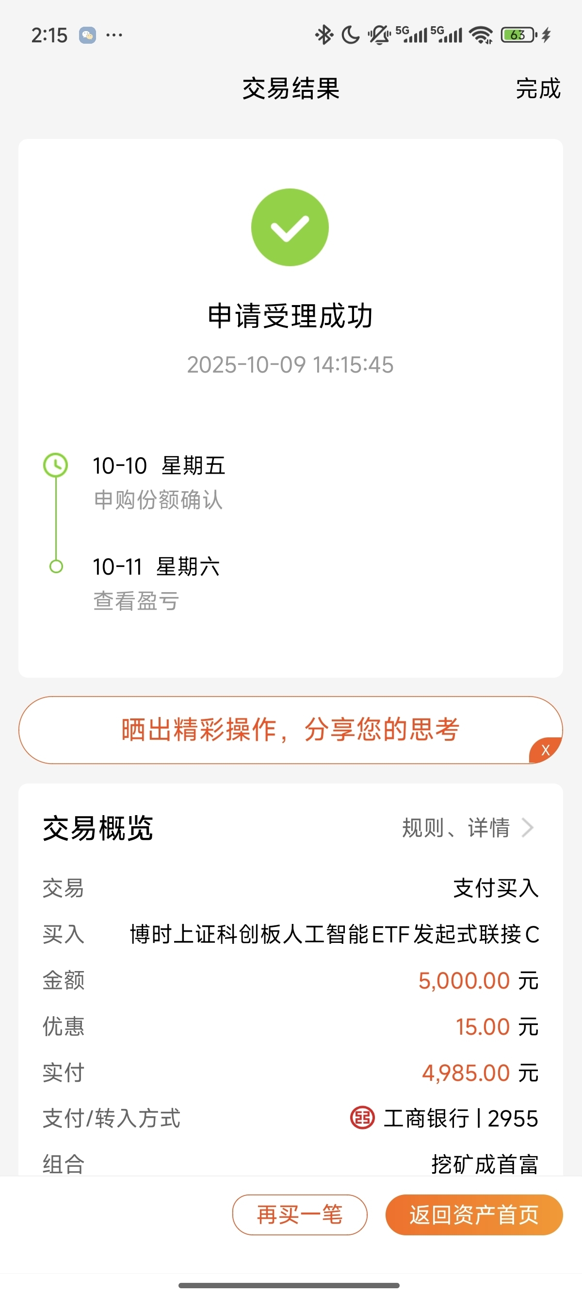 #晒操作# A股中长期慢牛趋势已确立,科创ai长期来看还在中间位置,继续领15元券上车#沪指盘中突破3900点!什么信号?# #10月基金投资策略#