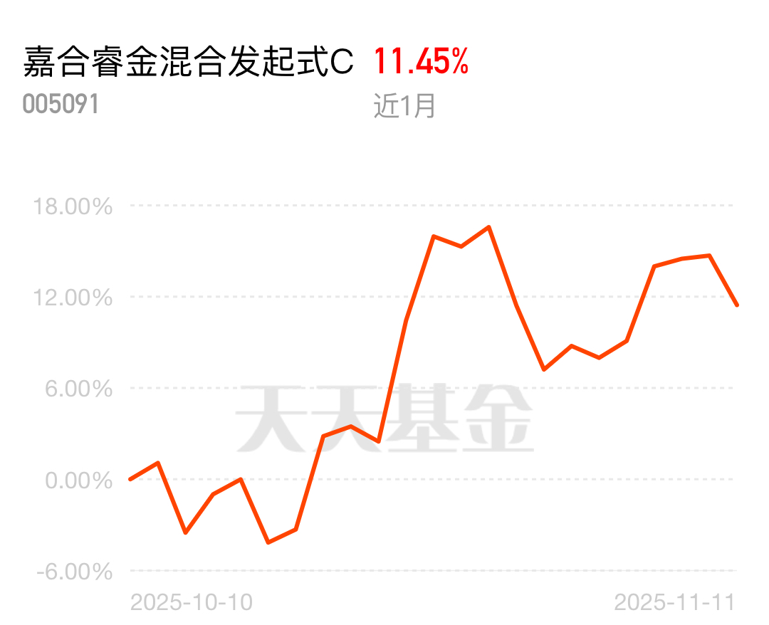 市场上关注科技基金的人越来越多,CPO和存储芯片作为热门细分,涨幅很诱人。嘉合睿金混合C就聚焦这些方向,近1个月涨了11.45%,差不多15个点的收益,想赚钱的可以关注。$嘉合睿金混合发起式C$
