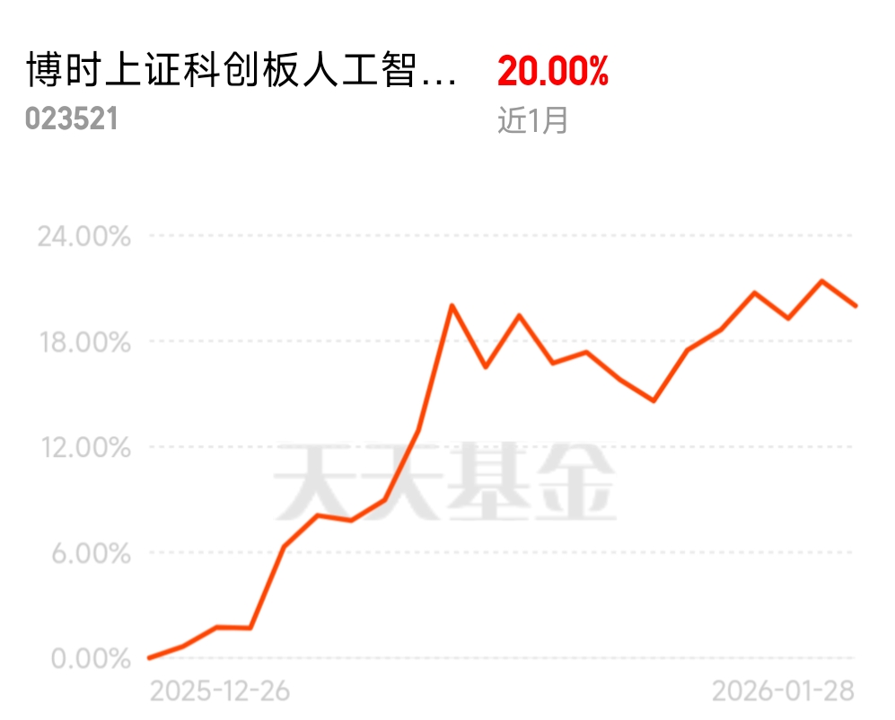 看到腾讯研究院报告说国内AI应用2026年要迎来拐点,再结合最近政策暖风频吹,如北京刚发布AI创新高地建设计划,感觉AI板块确实有戏。$博时上证科创板人工智能ETF发起式联接C$ 近一月收益已有20%,表现相当亮眼。关键是它投的都是科创板AI龙头,像寒武纪、澜起科技这些,都是AI算力基建的核心标的。现在海外大厂都在加码AI投资,国内政策支持力度也大,长期看AI产业趋势是确定的,现在这个时点布局AI指数产品性价比不错。#AI助手Clawdbot爆火!AI应用迎布局机会?#