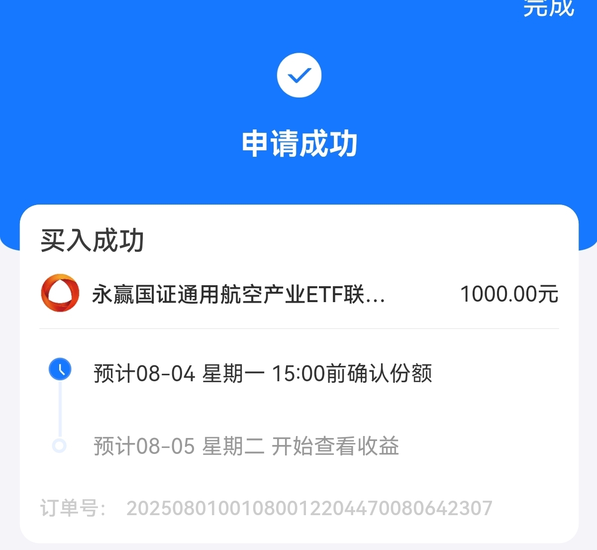 我加仓 $永赢国证通用航空产业ETF发起联接C$ 1000。这是只跟踪全市规模最大的通用航空指数,它聚焦低空经济,其中无人机占比高达87%。近期低空经济,尤其是无人机利好频出,政策端上各地积极落实部署低空经济产业,且“反内卷”的风也是刮向低空经济行业,这将带动行业高质量发展。