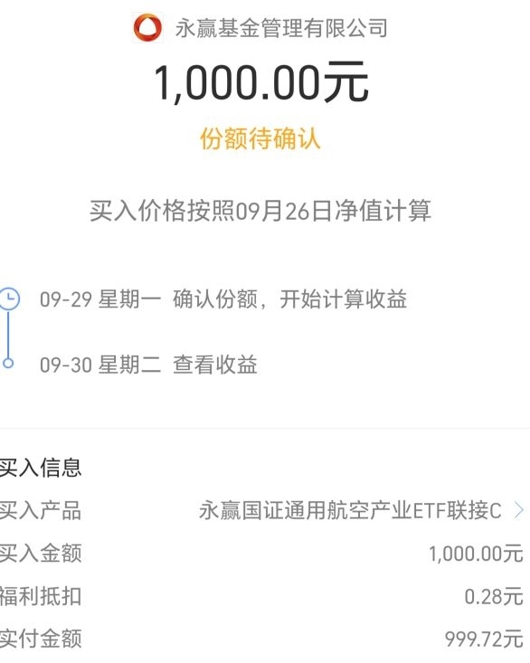 近几个月是科技主导的行情,我的持仓也是比较偏向科技,近期收益还不错,不过目前来看科技稍微比较高了,接下来我准备分散布局,之前慢慢加了1万的$永赢国证通用航空产业ETF发起联接C$ ,暂时没有表现,目前收益2.4%左右,这只基金是低空经济为主,景气度高,成长性也比较确定,无人化,智能化可能是十五五的核心主线之一,感觉10月份有可能会提到低空经济相关的内容,目前低空板块是主题投资的中低位赛道,后续我感觉有希望迎来新的一轮涨幅,节前我继续布局