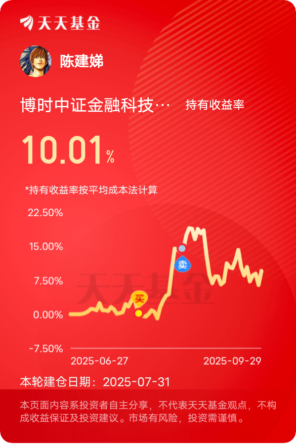 A股市场越来越火,ETF规模也跟着壮大,金融科技企业的收入预期那是蹭蹭往上涨,这只基自然也水涨船高,这潜力杠杠的,赶紧入手!#晒收益#