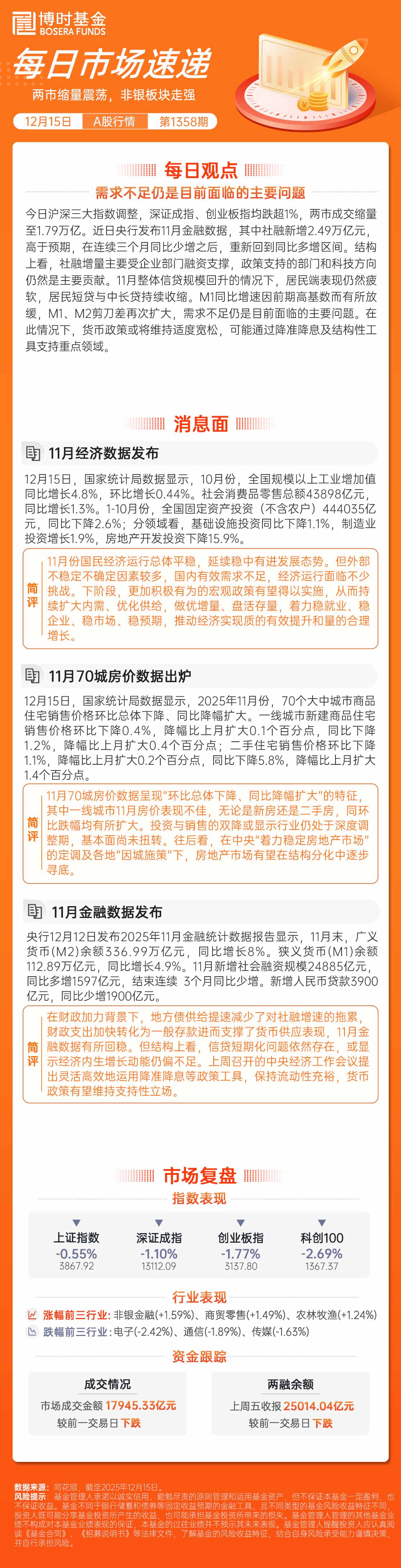 【博时市场点评12月15日】两市缩量震荡,非银板块走强