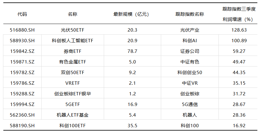 数据来源:wind,最新规模截至20251030,跟踪指数三季度利润增速(%)截至20250930。