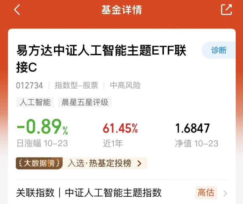 今天科技涨势如虹,人工智能表现抢眼,这波机会要抓牢$易方达中证人工智能主题ETF联接C$