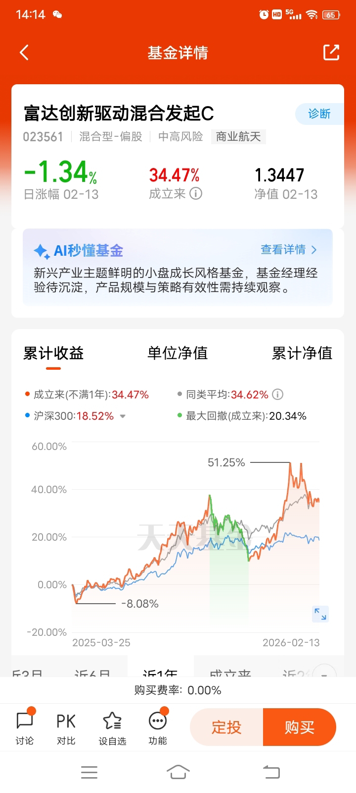 当然,我也看到了一些风险。比如这些赛道的估值都不低,部分公司还处于烧钱阶段,业绩兑现的时间点还不确定。另外,市场波动也比较大,这只基金成立以来的最大回撤达到了20.34%,对投资者的心态是个考验。就像“塞翁失马”,短期的波动不一定是坏事,反而可能是布局的好时机。