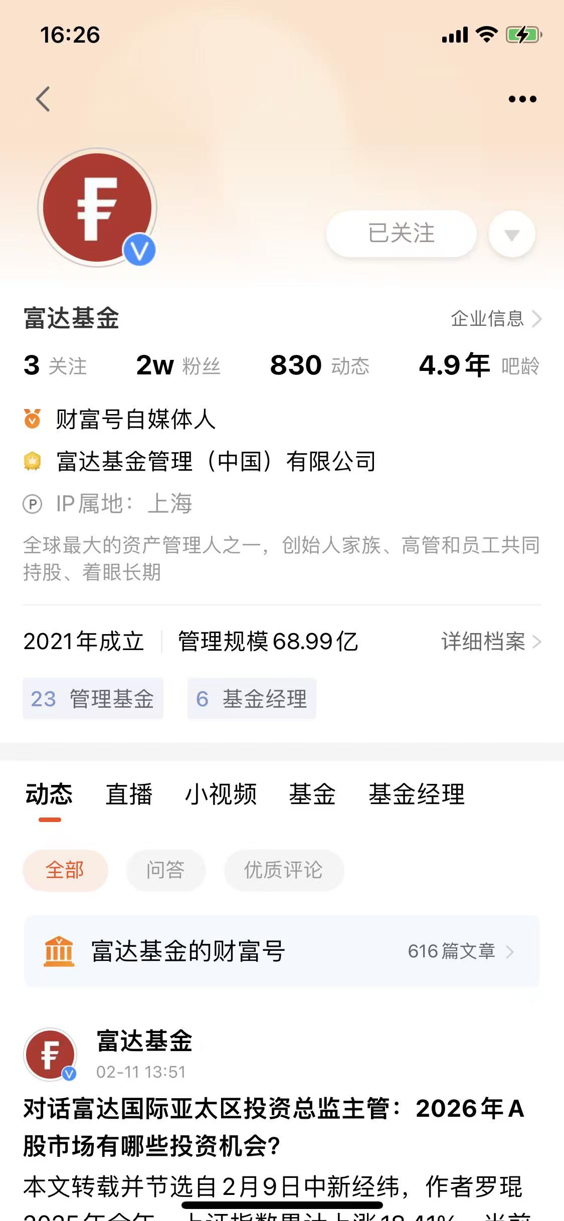 2026年的投资市场,机遇与挑战并存,慢牛行情下,盈利增长会成为核心支撑,而创新赛道就是我们把握机遇的关键。我的投资愿望,不是追求短期收益,而是稳稳跟上市场节奏,摆脱追涨杀跌的内耗。而富达创新驱动混合发起C(023561),不管是赛道布局、业绩表现,还是基金经理、费率优势,都完美契合我的投资需求,也适合大多数和我一样,想布局创新赛道、不想费脑追热点的普通人。