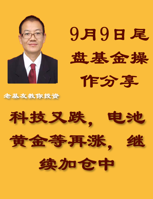 9月9日A股小幅回调,截止我发文时,上证指数跌0.29%,深证成指跌0.89%,创业板指跌1.77%。A股总成交量13393亿,相比上一个交易日同期缩量3422亿,估计全天量能在2万亿左右。两市有1225只个股上涨,有4049家下跌。贵金属、影视院线、地产、新能源车、电池、保险、银行等涨幅居前,国家大基金持股、半导体、光刻机、脑机接口、光伏、消费电子等跌幅居前。社保重仓跌0.52%,基金重仓跌0.82%,证券涨0.04%,银行涨0.46%,保险涨0.46%。我认为大盘以横盘震荡为主,继续稳定好戏台,热点题材轮动,个股唱戏。A股中期向上趋势仍在,我今天继续加仓科创AI、中证2000、消费80、云计算、科技成长、新能源车和一支“固收+”基金。