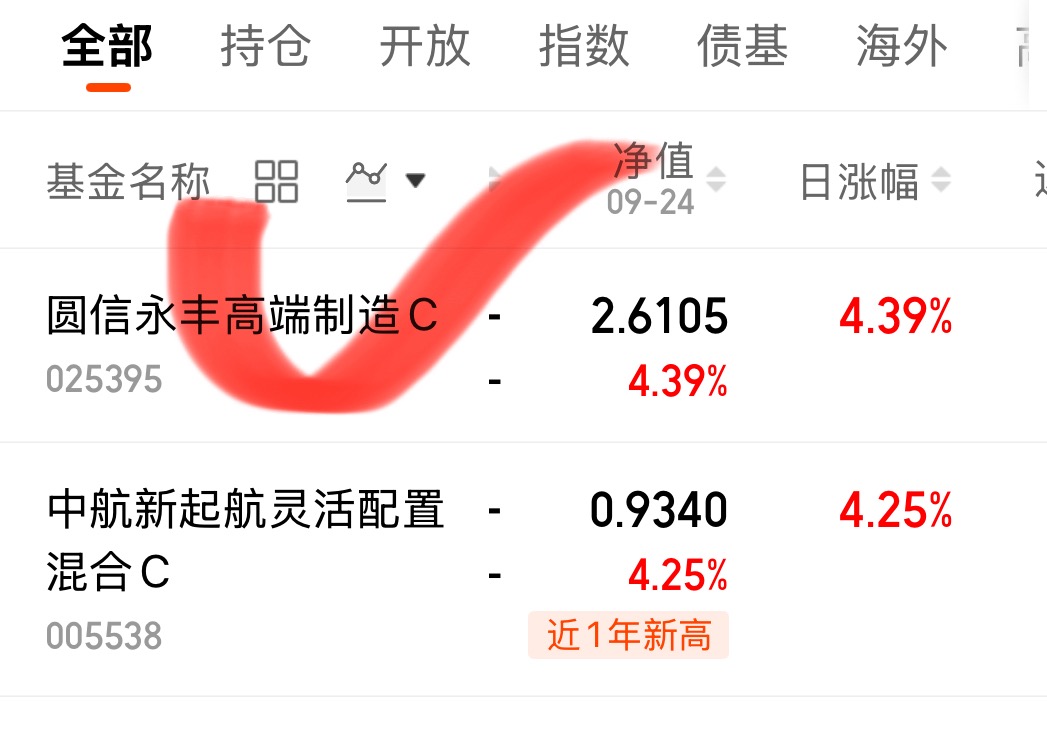 电池板块最近超强!我自选的$圆信永丰高端制造C$今天涨4.39%,比同类基金好,