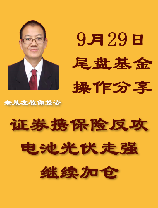 9月29日A股震荡走强,截止我发文时,上证指数涨0.24%,深证成指涨1.29%,创业板指涨1.95%。A股总成交量14209亿,相比上一个交易日同期缩量842亿,估计全天量能在2.0万亿左右。两市有2697只个股上涨,有2566家下跌。电池、贵金属、证券、PEEK材料、光伏、液冷等涨幅居前,教育、煤炭、兵装重组、跨境支付 、养殖、创新药等跌幅居前。今天养老金重仓微红0.03%,社保重仓涨0.42%,基金重仓涨0.65%,保险涨1.32%,银行跌0.5%,证券涨3.06%。今天证券率先发力上攻,成功带动做多人气,公募、保险和社保接力做多,一起将大盘拉起,个股纷纷由绿变红。A股上演弱转强走势,看来大家无惧今天的抛压,对节后的行情信心十足,我今天继续加仓科创人工智能、创业板科技、创业板增强、光伏储能、机器人和消费优选。