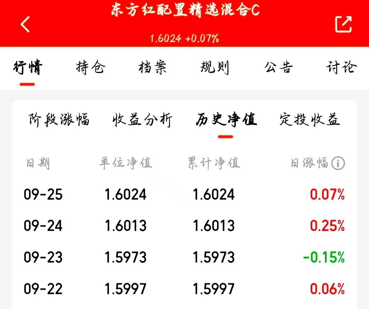 这个还挺稳的啊,采用固收+策略的东方红配置精选C已经迈入配置区间,得跟上了。成立