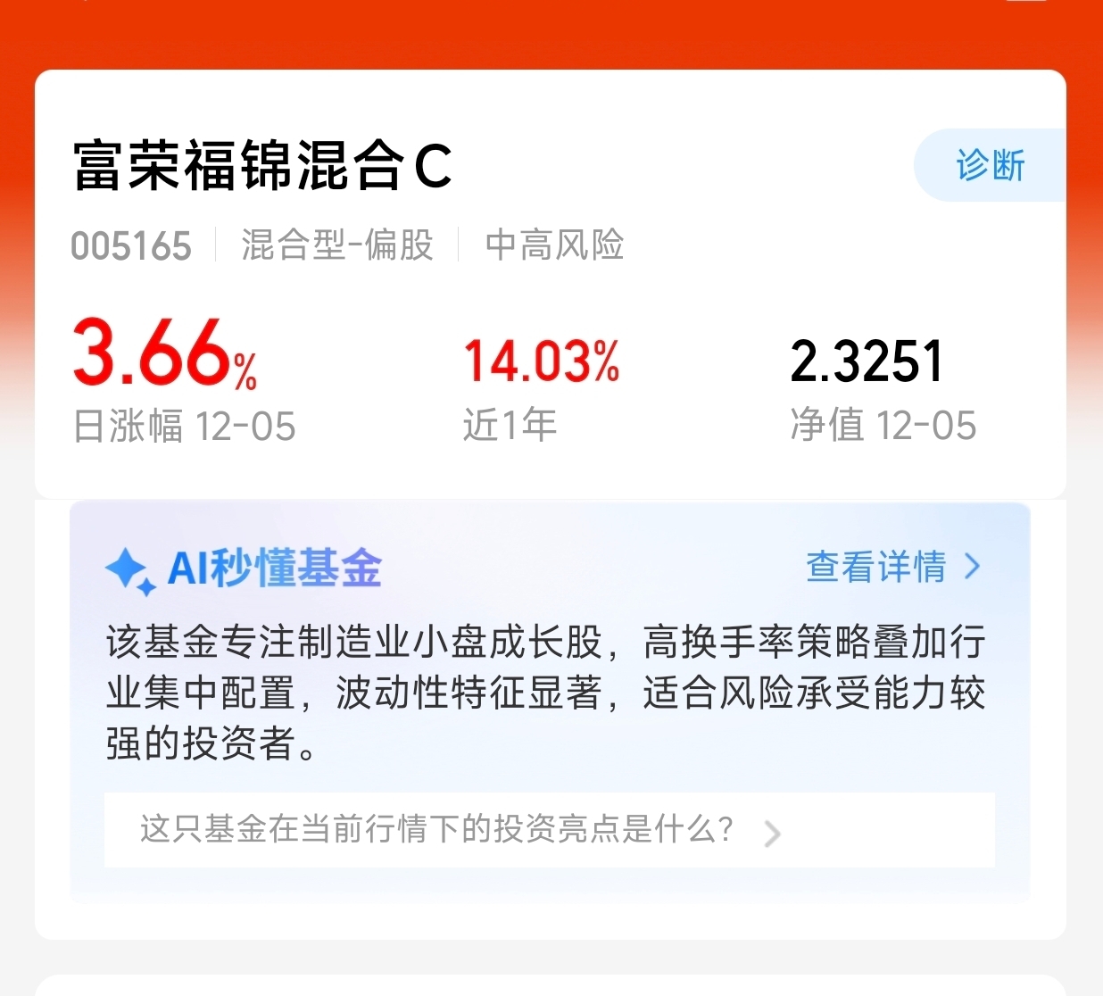 今天的涨幅榜被机器人占上了,好牛好给力,$富荣福锦混合C$业绩也不差