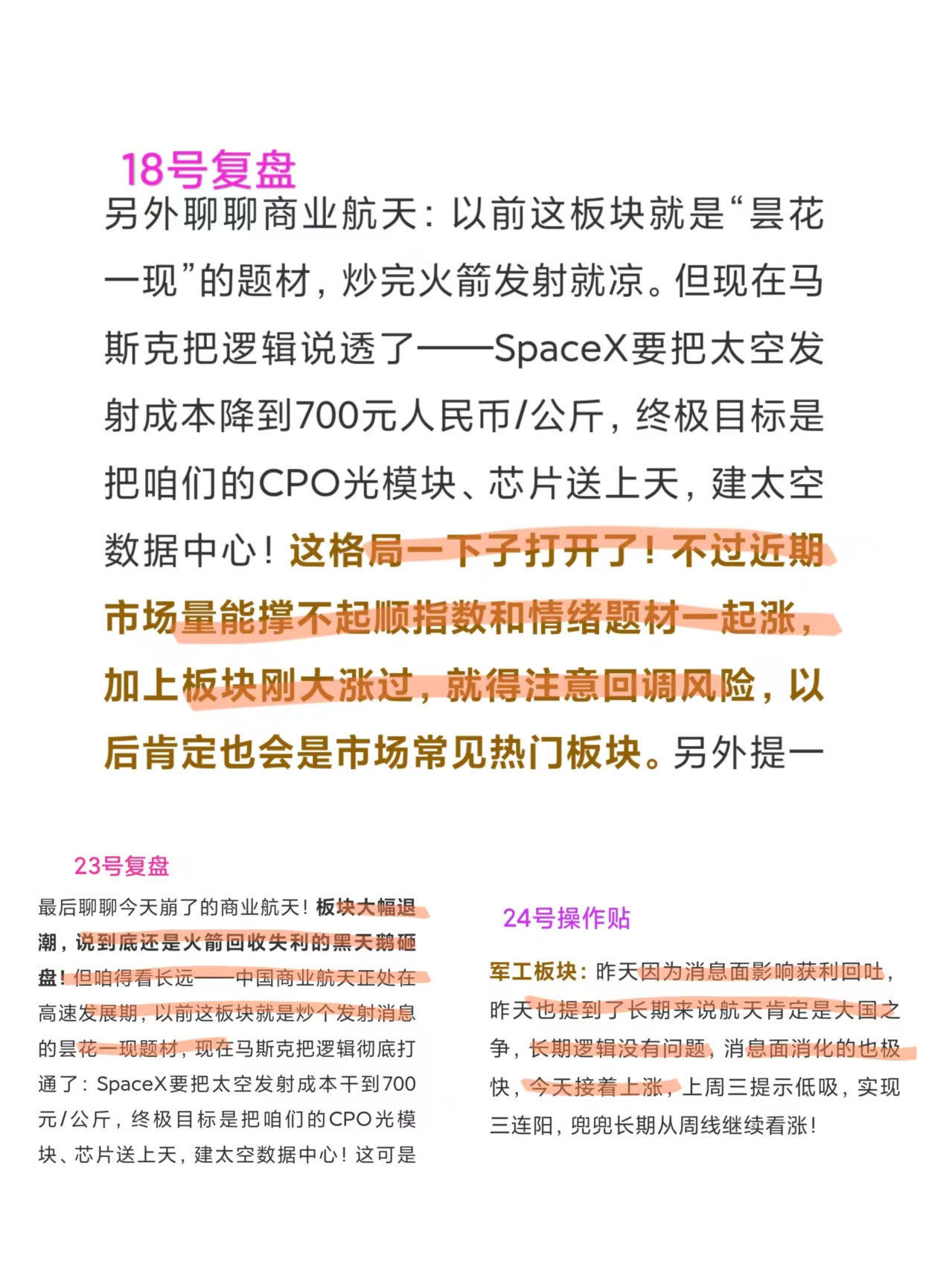 说到商业航天,兜兜18号就给宝子们扒透了逻辑,长期坚定看好,24号又提醒情绪消化到位,这波跟上的宝子,30%-40%的利润妥妥到手了吧?