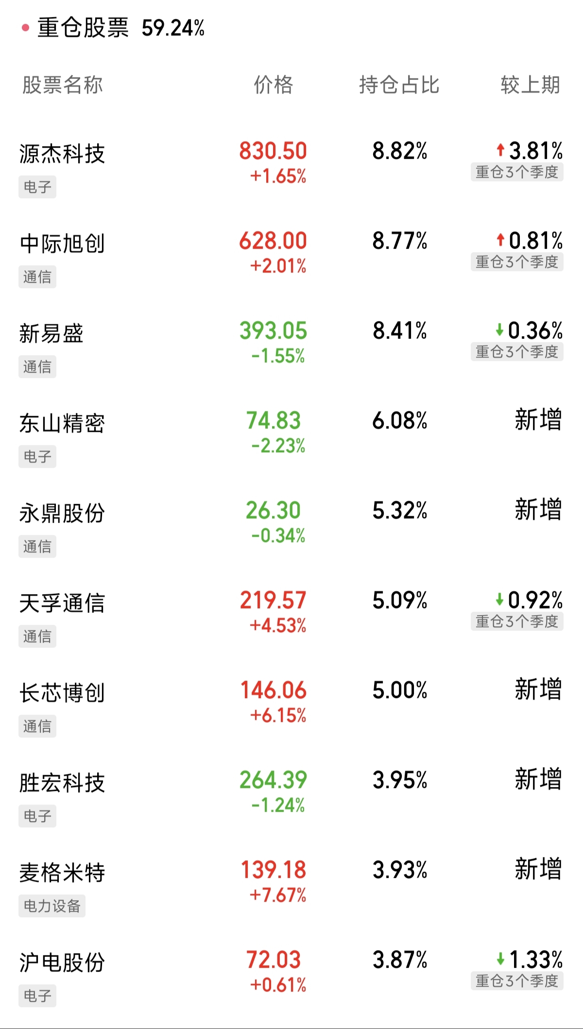 理解它的表现,可以把它想象成一位经验丰富的冲浪者。第一股浪潮,是清晰可见的全球AI算力基建浪潮。这波由北美科技巨头资本开支驱动的需求,如同海面上涌起的巨浪,直接拉动了从光模块、高端服务器到先进封装等整条硬件产业链的景气度。基金经理廖星昊在季报中明确指出,AI产业仍是目前景气度最高的行业。他所管理的基金,其前三大重仓股——源杰科技、中际旭创、新易盛,正是站在这波浪潮尖上的核心硬件供应商。