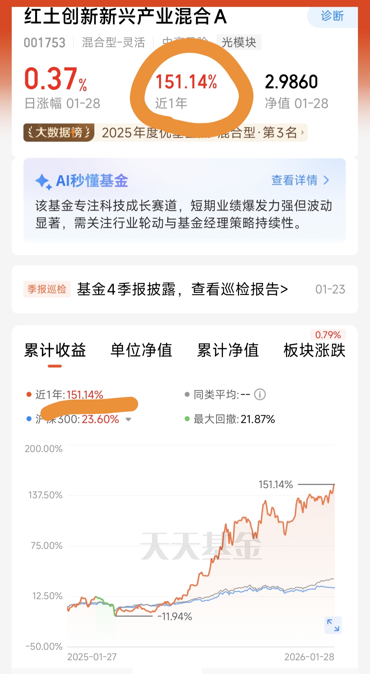 基金的业绩,是这种双浪叠加逻辑最直接的试金石。数据显示,该基金在过去六个月取得了显著回报,而在更长周期的近一年时间里,其复权单位净值增长率高达151.14%,在2025年全市场的主动权益基金中位列第三。更早的业绩排名也显示,其近半年和近一年的收益率在同类基金中分别位居前五和第一。这些数字不仅仅是结果,更是其布局策略与产业趋势高度契合的证明。
