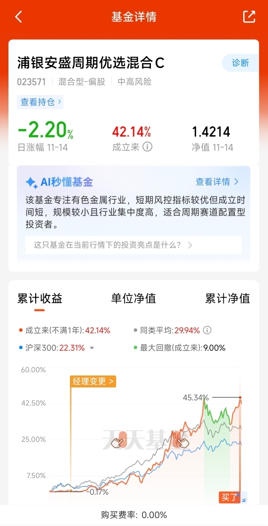 持仓里可都是有色金属龙头企业,近6个月也有41+的收益,此时机会来了