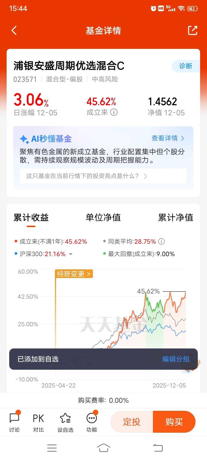 然后是关于咱们$浦银安盛周期优选混合C$这只基金的:它成立不到一年就涨了45%+,跑赢同类和沪深300不少,这成绩确实亮眼!不过我也有点小担心——基金现在行业配置比较集中在周期赛道,要是后续周期行情走弱,会不会影响收益的稳定性呀?还有它的规模波动,后续会不会因为规模变化影响您的调仓节奏?