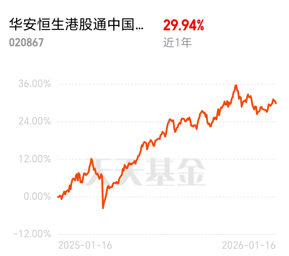 家人们,稳赚不慌的央企红利基来了,$华安恒生港股通中国央企红利ETF发起式联接C$ 近 1 年涨超 29%,低估值高股息,央企分红超给力,闭眼入都安心