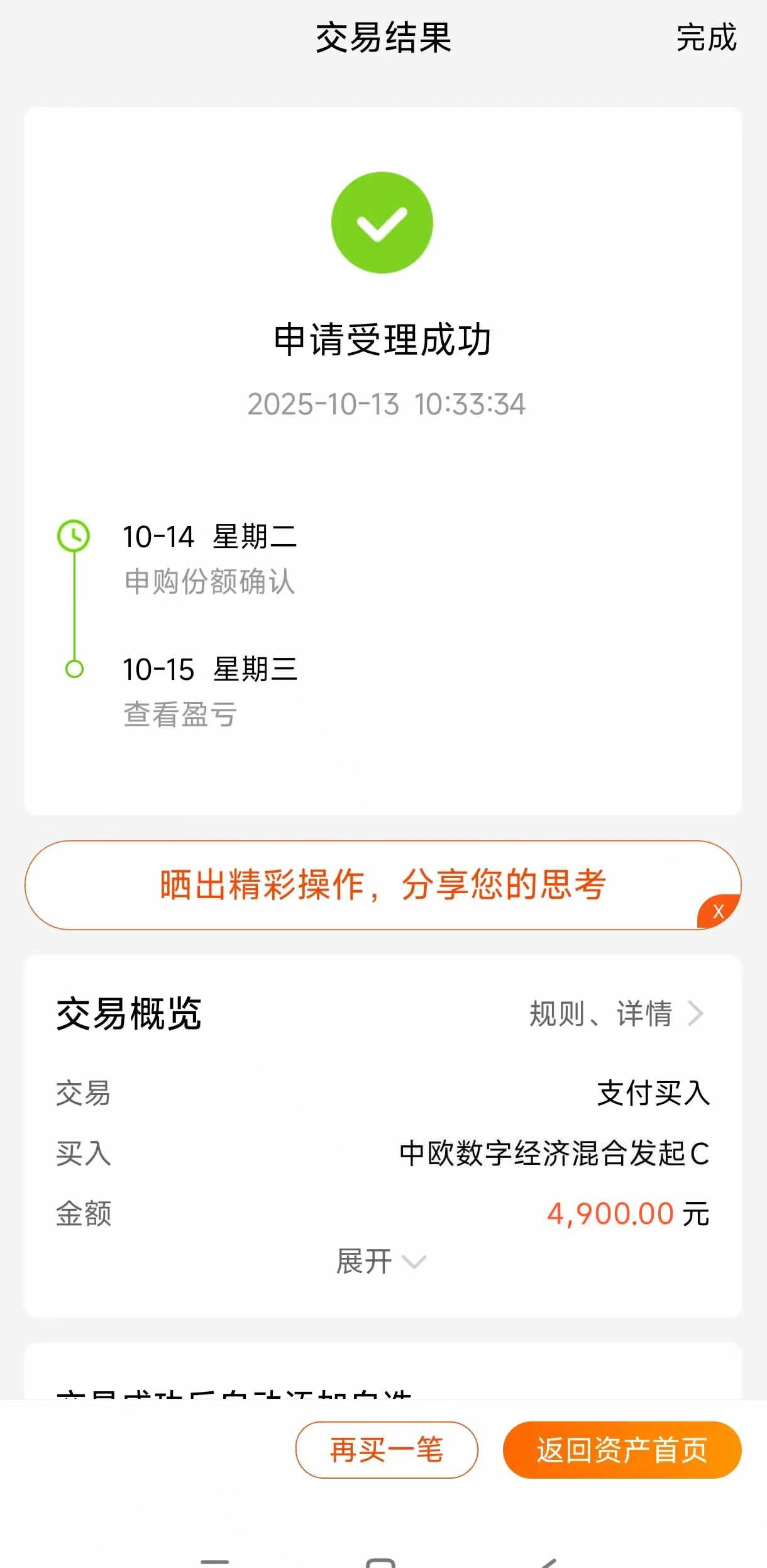 投资有时候需要点逆势思维。当大家都恐慌的时候,也许机会就在里面。$中欧数字经济混合发起C$(018994)混合这只基,凭借在AI领域的深度布局和基金经理的主动管理,过去一段时间创造了很不错的回报。AI产业的长期成长性摆在那里,短期市场情绪带来的波动,反而可能为我们提供了更好的介入价格。上周五的急跌就是一个例子,我今天看实时估值已经在慢慢回升了。看好AI未来又不想错过行情的话,不妨多关注一下这类产品,特别是现在有红包活动,能省则省嘛。#指数操盘手集结令#