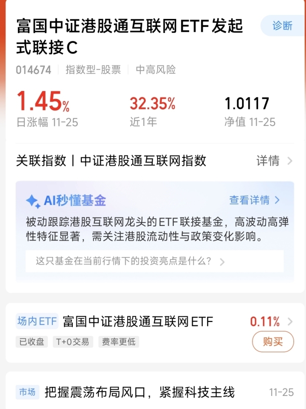 手里还买入景顺创新药,当前有点磨人;转头看了眼富国中证港股通互联网ETF联接C,