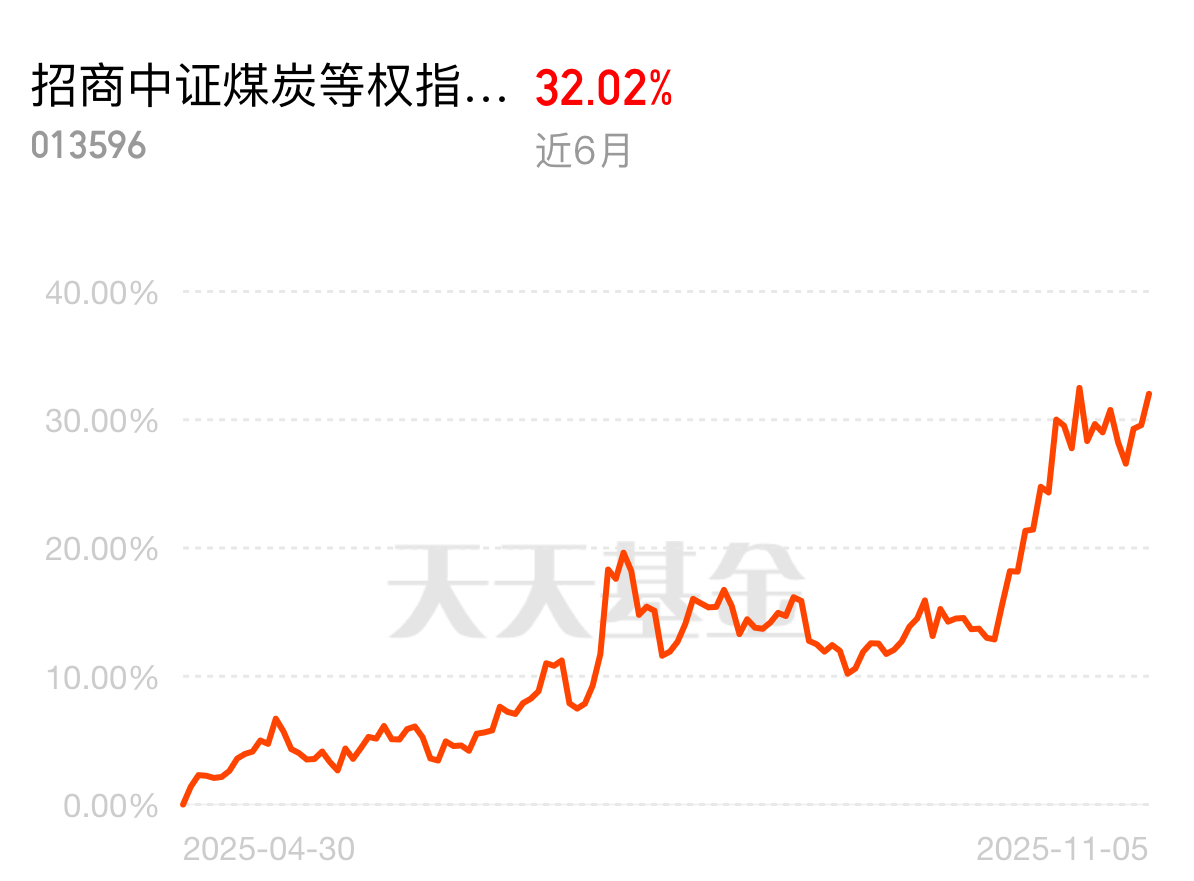 煤炭行业持续向好,供需两端的利好让行情不断升温。招商中证煤炭等权指数C昨日日涨幅