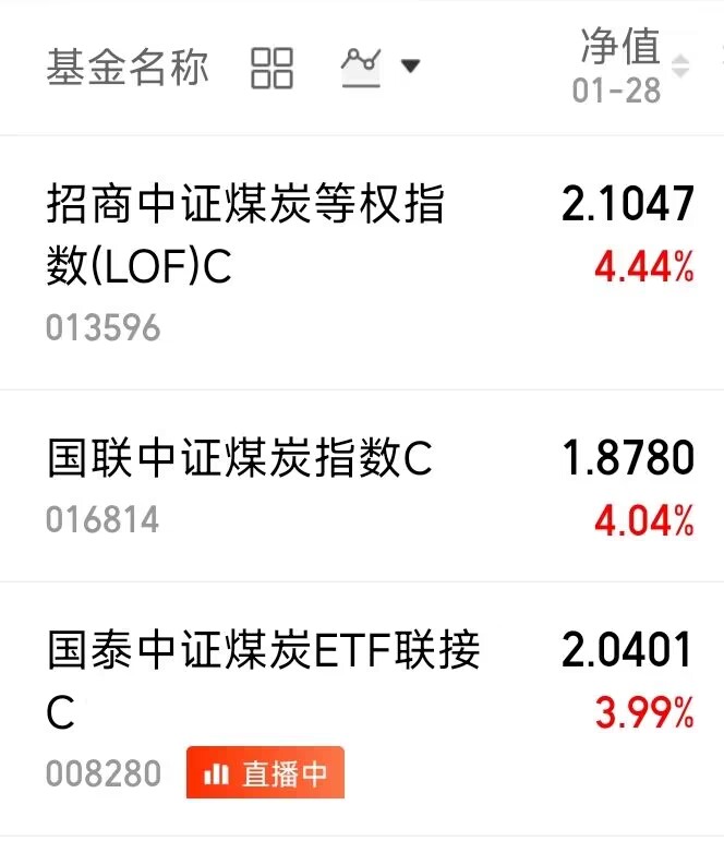 A 股市场走出放量震荡的行情,各大指数表现分化明显。短期来看,市场正处于震荡蓄力的阶段,当下布局不用追热点,投资方向还是要聚焦有业绩确定性的标的,以及贴合政策利好的主线方向。$招商中证煤炭等权指数(LOF)C(OTCFUND|013596)$昨日上涨4.44%。