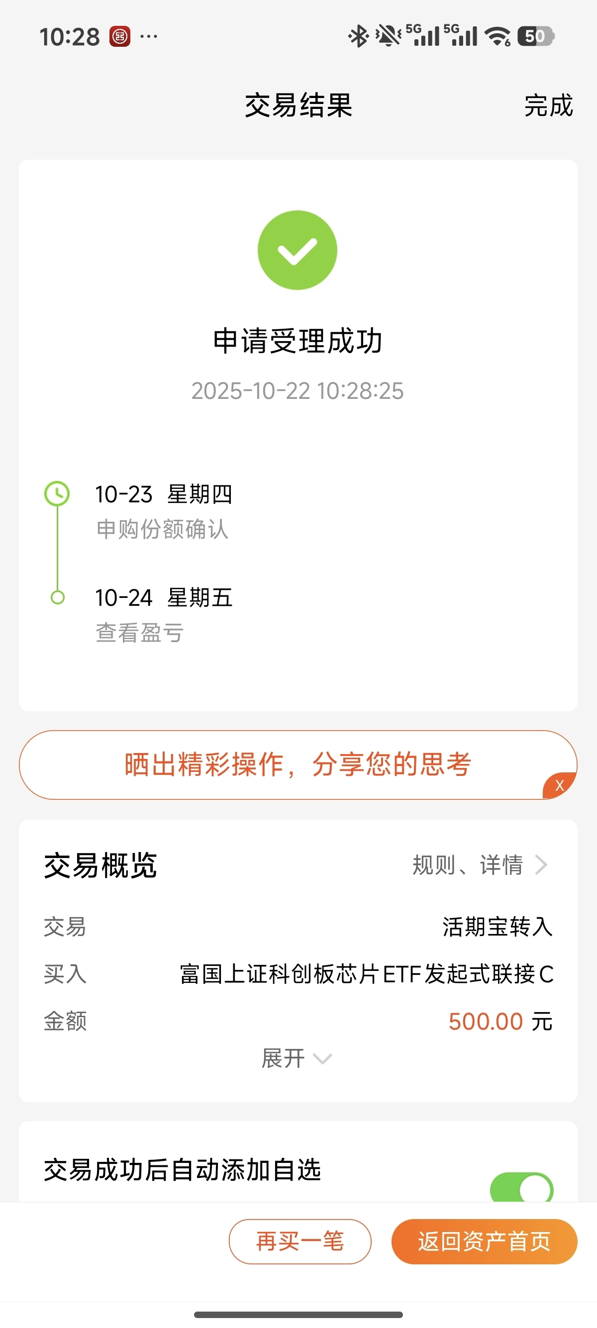 我认为,外部扰动已经趋于平静,市场主线正在重返科技,今天继续加仓一笔$富国上证科创板芯片ETF发起式联接C$ 。