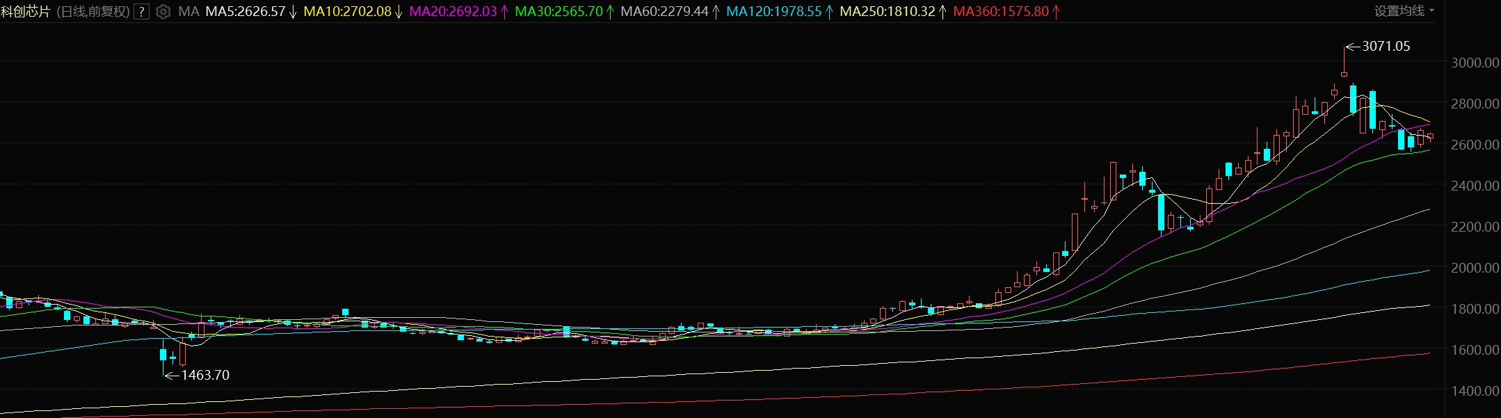 从日K来看,科创芯片虽然还未彻底走出下行趋势,但是在这个位置的支撑已经较强,下方30日线或是一个强支撑;