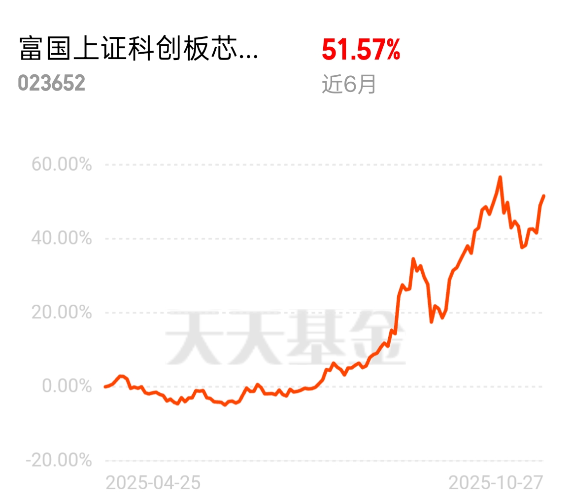 芯片这波真猛!我拿的$富国上证科创板芯片ETF发起式联接C$,近6个月涨了52%