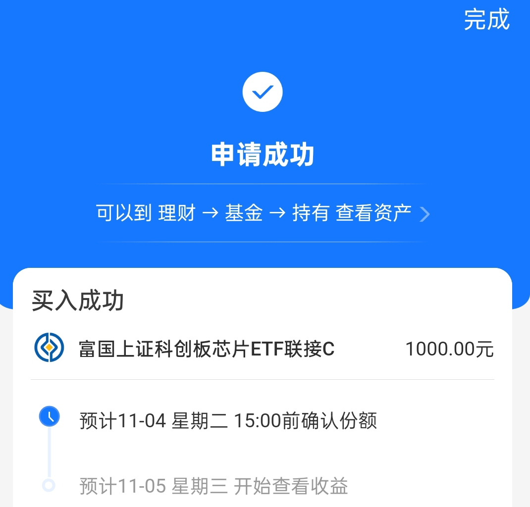今天三大指数低开低走,科创芯片目前估值也调整了2个点左右,加上今天目前已经连续调整3天了,调整幅度还是挺大的,我觉得这也是个机会,今天我打算加点$富国上证科创板芯片ETF发起式联接C$