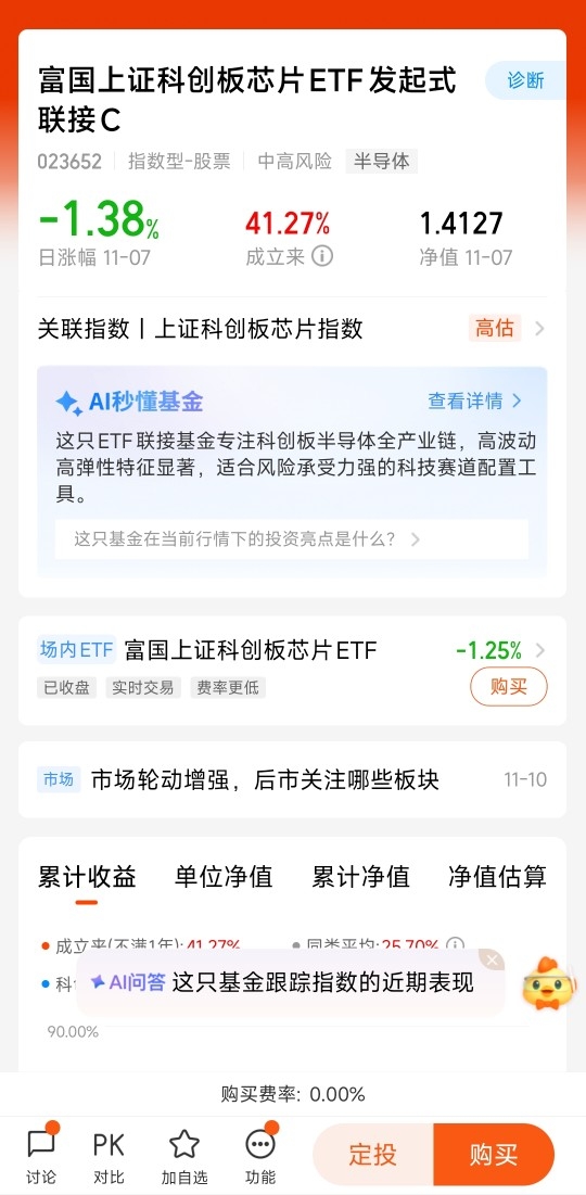 最近搭了点富国上证科创板芯片ETF联接C,芯片行业回暖明显,近3个月翻身了34%,跑赢多数同类同类不少;老基金经理老将十年,持仓里全是AI算力、汽车芯片这些硬核方向,涨跌互现时也稳得住。